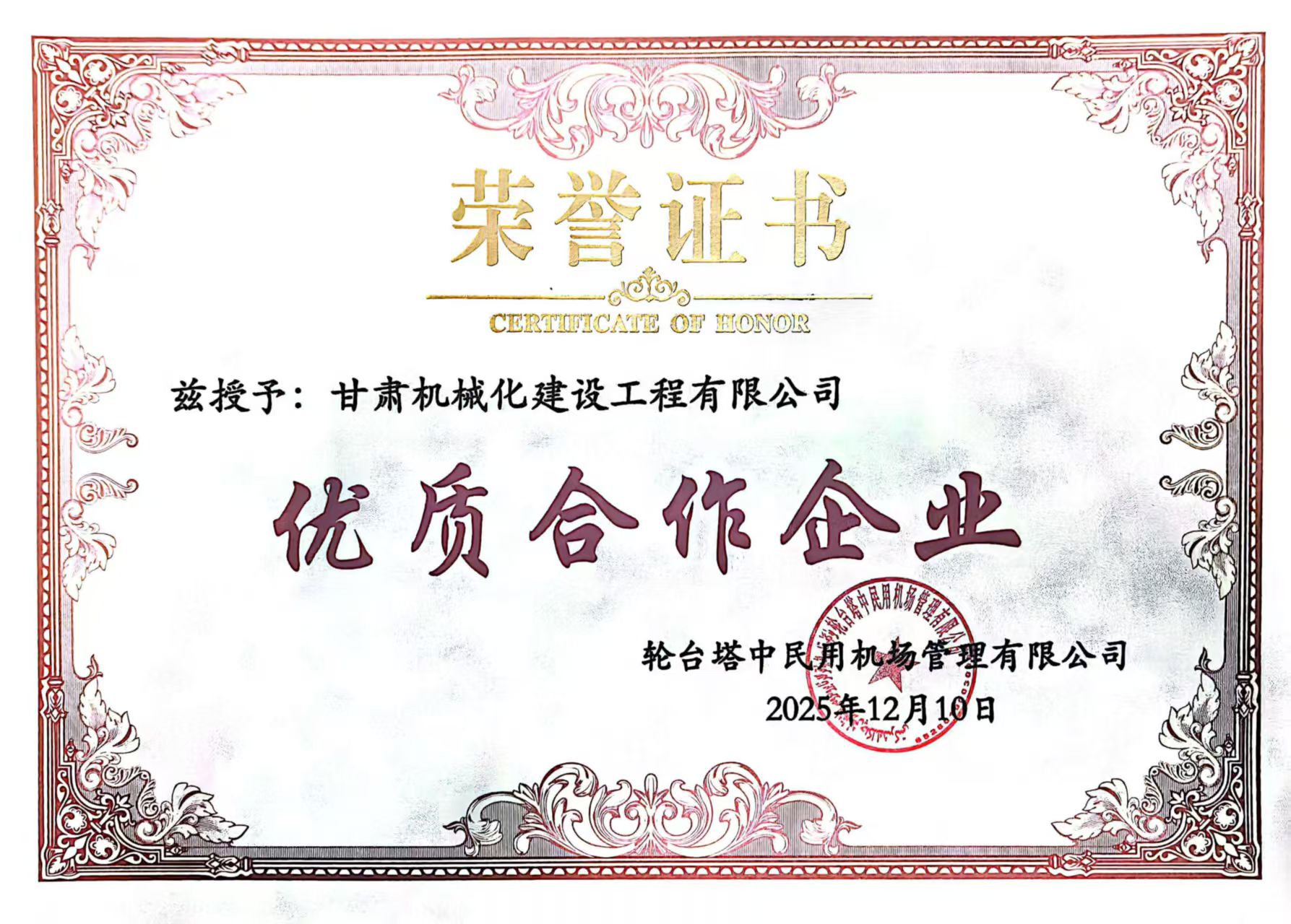 近日,新疆輪臺機(jī)場項(xiàng)目業(yè)主單位正式發(fā)布表彰決定,對項(xiàng)目建設(shè)期間履約盡責(zé)、實(shí)績突出的合作方及個人予以通報嘉獎,我司憑借扎實(shí)的工程履約能力與優(yōu)質(zhì)服務(wù)獲評“優(yōu)質(zhì)合作企業(yè)”,項(xiàng)目負(fù)責(zé)人同步斬獲“優(yōu)秀項(xiàng)目經(jīng)理”稱號,實(shí)現(xiàn)集體與個人榮譽(yù)雙豐收,彰顯業(yè)主單位對我司項(xiàng)目建設(shè)工作的高度認(rèn)可。